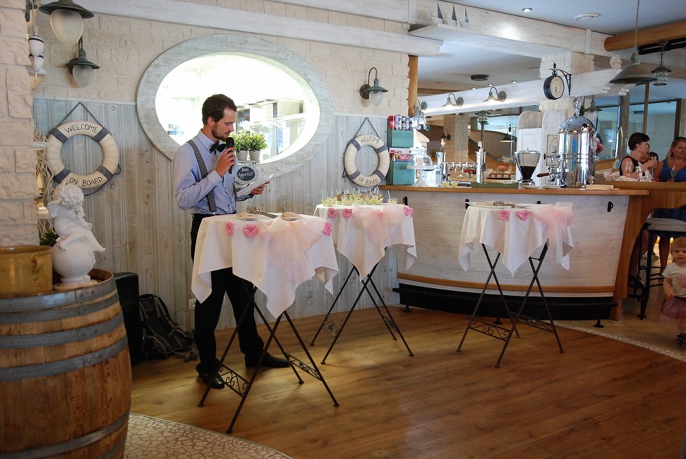 - zajistíme moderátora - jeho úlohou je nejen uvedení svatebních zvyků, ale také např. pozvání hostů k rautu či asistence při zábavě apod.
